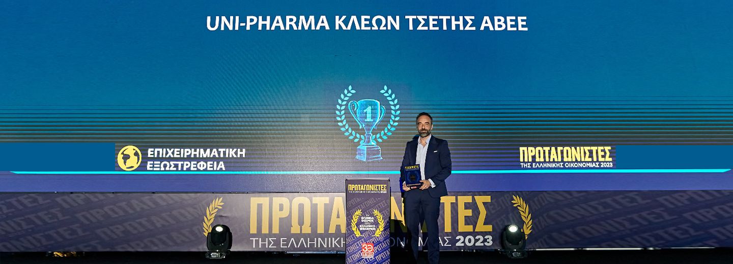 The success stories of Greek entrepreneurship were honored at the “Protagonists of the Greek Economy 2023” awards on Monday, July 17, 2023. The awards were granted based on the official financial data of the companies, as recorded in their financial reports and detailed in the 10th edition of “The Strongest of the Greek Economy” by Direction Business Network. UNI-PHARMA was awarded for its business extroversion, with George Spigos, OFET’s Export Director, receiving the award on behalf of the company.